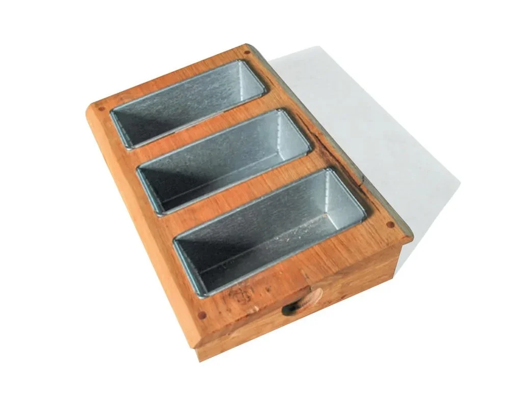Oak Cutlery stand with Galvanised Vintage loaf tin inserts. 38cm x 58cm x 15cm