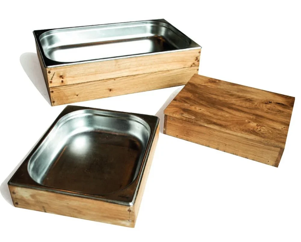 Oak food displays and merchandising for the restaurant and hospitality industry.